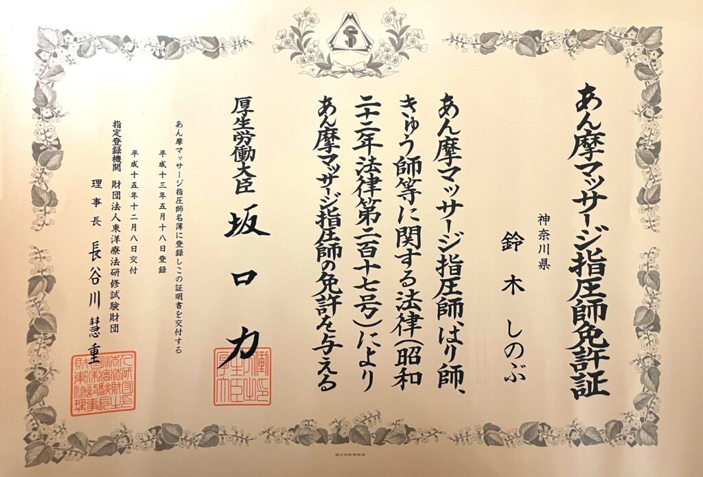 あん摩マッサージ指圧師の鈴木しのぶです。